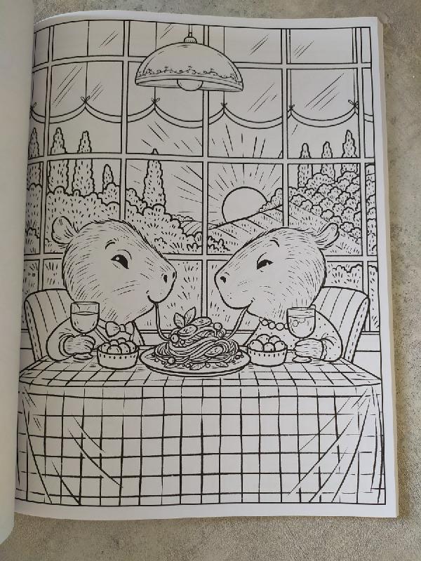 Очень милая раскраска. Бумага примерно как в Creative haven. На склейке.